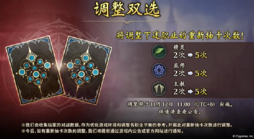 ·内容 调整下述职业的重新抽卡次数。