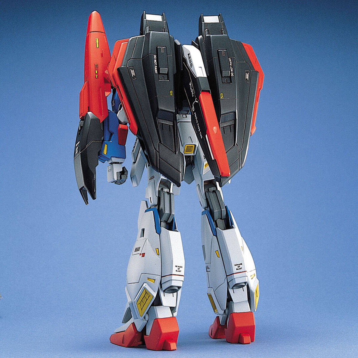 『機動戦士Zガンダム』より、エゥーゴの可変モビルスーツ「ゼータガンダム」をその精悍なプロポーションまでも再現、キット化しました。最大の特徴であるモビルスーツからウェイブライダーへの変形を、差し替え無しで完全に再現可能です。テールスタビライザーの認識灯はLEDを内蔵し、発光します。ビームライフルは伸縮機能まで再現されています。その他にも、腰に収納されたビームサーベルが2本、変形には欠かす事のできないシールド、腕部に装着されるグレネード・パック、そしてゼータガンダム最大の武器であるハイパー・メガ・ランチャーが付いています。