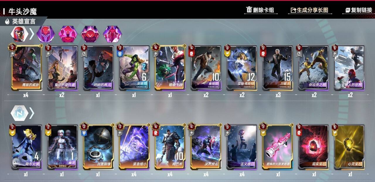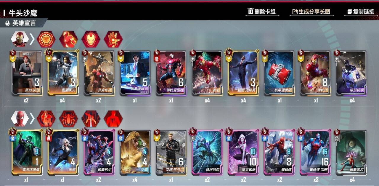 5费:界蜘蛛侠(链接核心,一般来说两张起步,越多越好)界幽灵(有时候有用,可换)