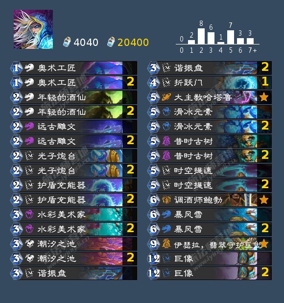 星灵法主要依靠折跃门给大哥巨像减费,而不断打出的星灵法术可以给巨像增加伤害,所以卡组就是一边利用冻结卡苟活一边释放法,最后用低费高伤的巨像终结游戏。卡组需要合成的紫卡昔时古树在很多卡组中都可以用,合了不亏。
