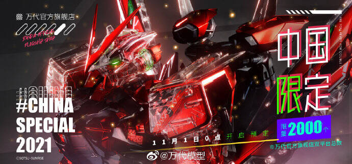 万代 中国限定 PG 红色异端高达改(电镀骨架/外装透明版)