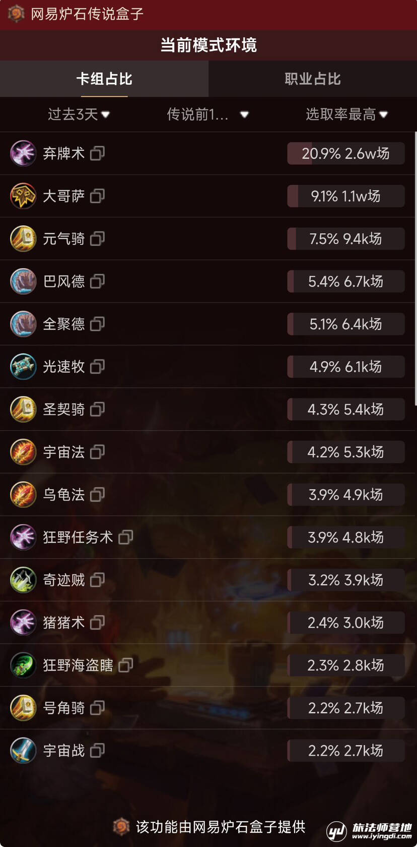 可以看到,弃牌术、otk德、大哥萨和元气骑是狂野出场率最高的四类卡组。参照现有构筑,我先概括一下他们的特点: