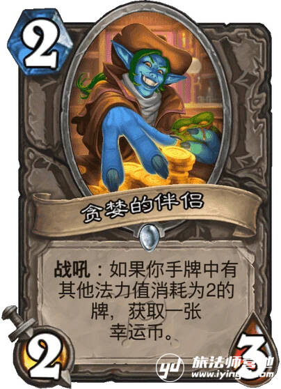 贪婪的伴侣,能攒币提前启动,能配合暗影步(伴侣+暗=5牌3法术0费,伴侣+暗+殒=8牌5法术回一费),给巨人和书记大量减费。