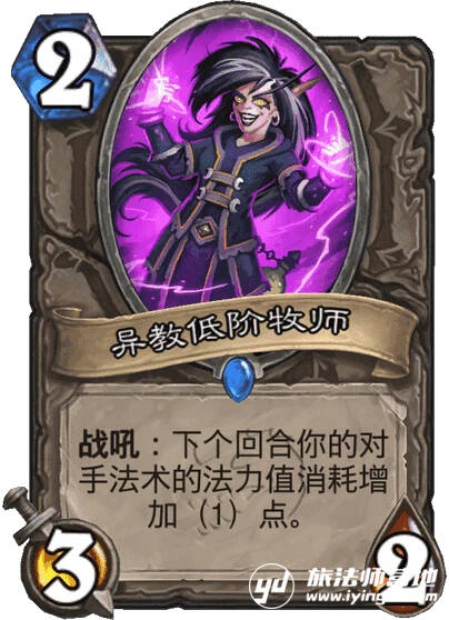 异教低阶牧师(小塞布),既能卡大哥萨光速牧巴风德的启动,也能卡乌龟法宇宙战的解场苟活,猪猪术和元气骑属于这两个都吃,所以这个卡组打他们胜率较高,本身被暗步回手是0费,特别灵活,因此要熟悉不同职业重要法术的费用来考量压几次小塞。