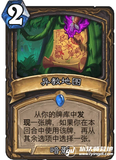 异教地图,牌序灵活,发现强度极高,常见配合偷费+地图能刷大量牌,地图找偷费能为下回合的爆发做准备。