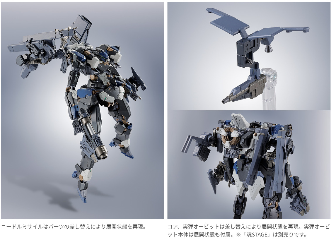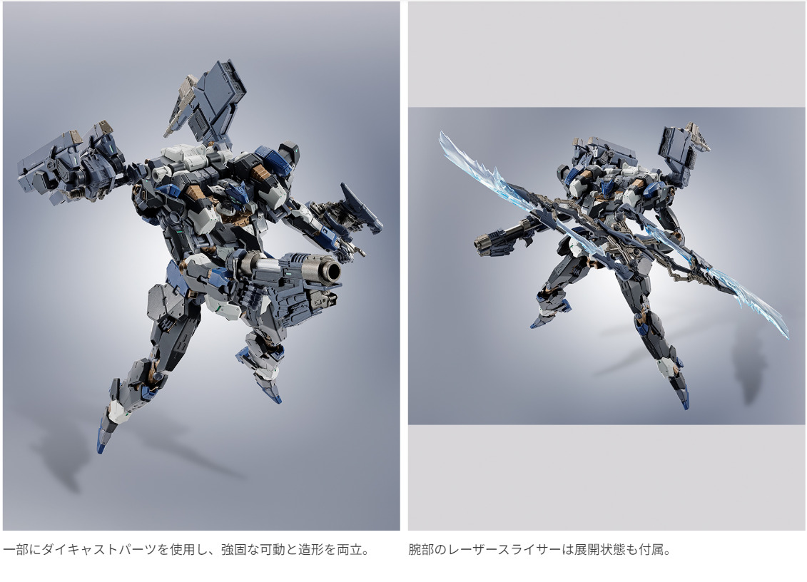 ROBOT魂ならではの広い可動範囲に加え、関節の一部にダイキャストパーツを使用。造形・彩色・可動範囲を追求し「EL-PC-00 ALBA STEEL HAZE ORTUS / Rusty」を立体化。