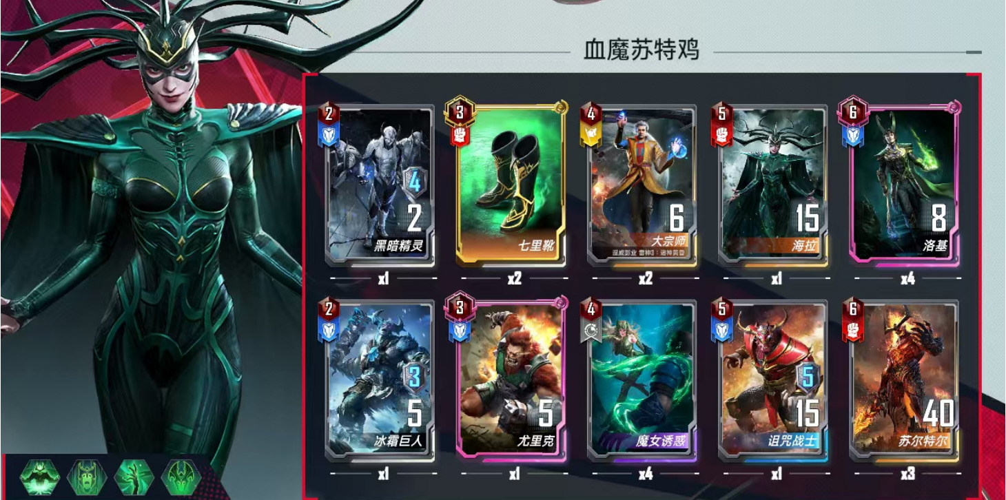 试过很多种搭配,包括带惊队,用惊队带幻象权杖把幻象洛基丢过去,然后6费遭遇复活最右边的鸡哥,最后是场上无限的鸡哥。游戏就卡死了,所以放弃了这种玩法。