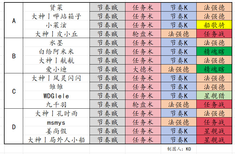 清一色的贼术,贼术在高分段中也是含量非常高,不过高分段中也不少见的蛋术在比赛中缺无一人选择。