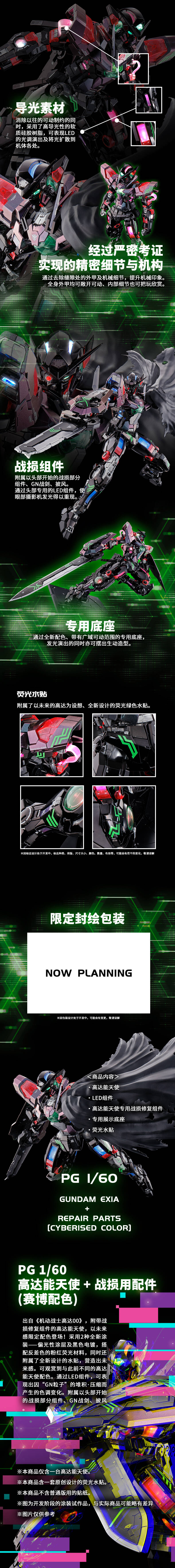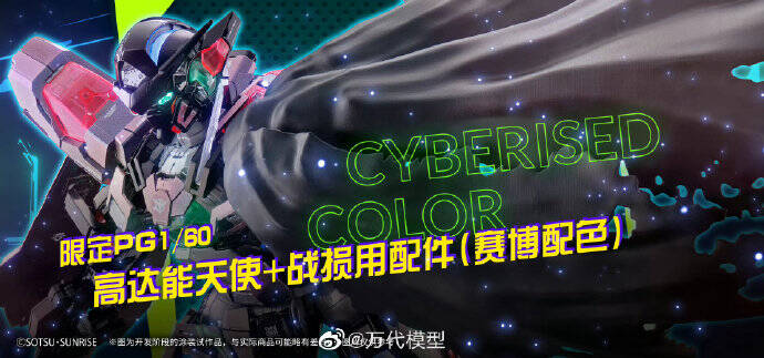 限定PG1/60高达能天使+战损用配件(赛博配色)出自《机动战士高达00》。