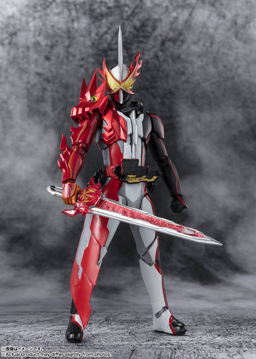 2021年に発売された「S.H.Figuarts 仮面ライダーセイバー ブレイブドラゴン」が、右肩のブレイブドラゴンボールドと火炎剣烈火の刃であるヒブリジンにメタリックカラーをまとい、TAMASHII NATIONS STOREに再登場!