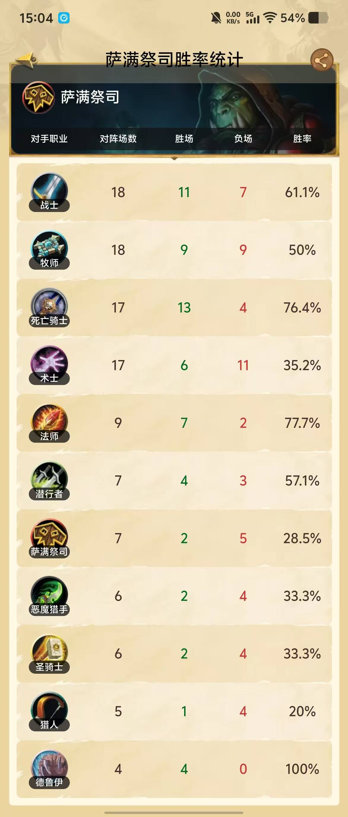 这个月的对阵胜率如图: