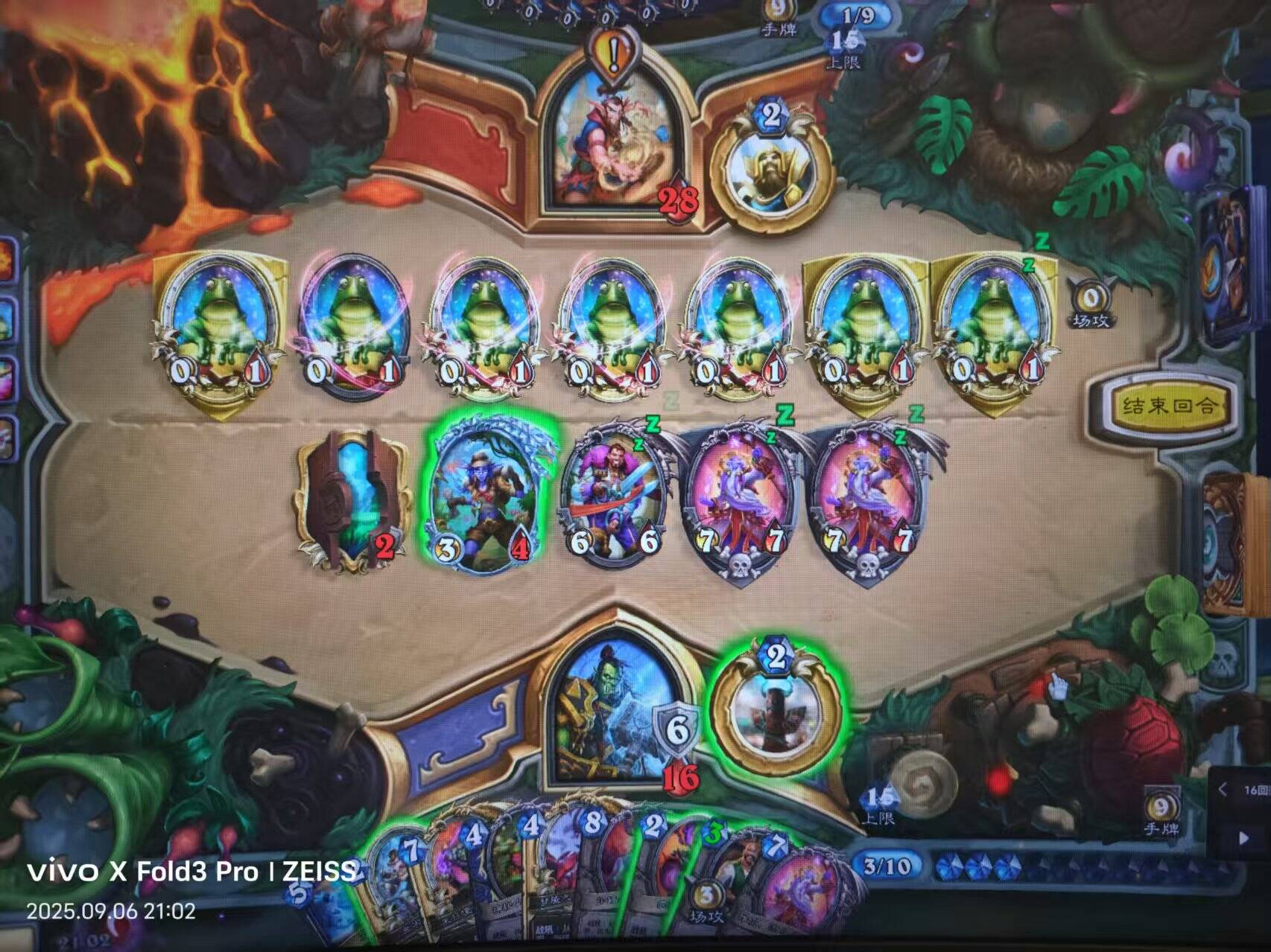 (1)对任务术:很难打,除非对面卡手。五费努波顿印冰霜摆件,后续三角洗星云。衍生牌尽量不拿亡语随从,苟到后面三倍安布拉叠个几十甲。守赢。