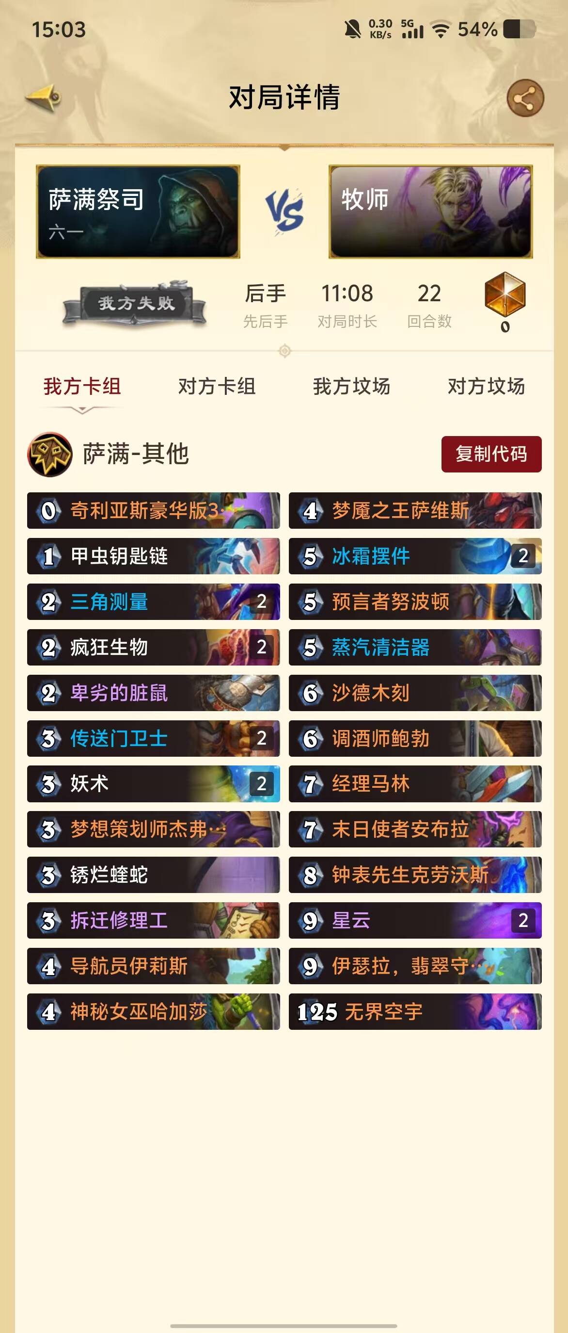 雏形就是星云萨,本人很喜欢萨满,摩摩尔削弱后我也没有放弃萨满,近五个赛季(140-144)合计游玩萨满单职业差不多1500场,途中加入测试过各式各样的单卡,也试过星舰体系和灌注体系,优化到现在应该就是最终版本了。胜率基本都是50%左右徘徊,比较吃对局熟练度,但好玩是真的太好玩了,吃刀、拆标、呱、蒸汽机器人、三倍脏鼠,试想带这么多针对牌怎么会不好玩,在这个版本末期,大家24799玩腻了可以试一试。