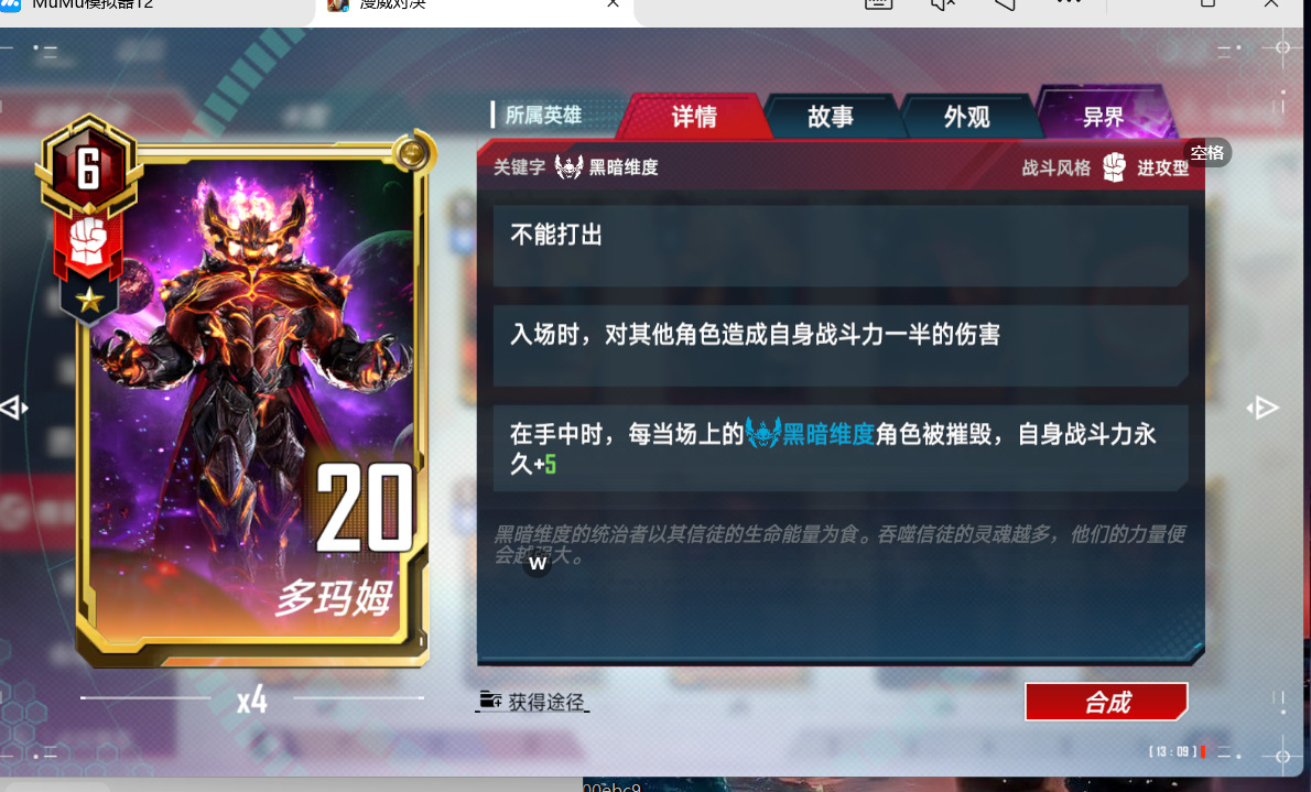这张卡是卡组的核心之一 利用卡西利亚斯的效果(友方单位阵亡召唤手里维度卡)因为手里只有多玛姆 所以稳定拉出多玛姆来炸场 配合领袖对决 也可以先制就开始炸场并且由于场上稳定只有多玛姆不属于诸神黄昏卡 所以洛基的阵亡效果可以把他变成幻象 配合诸神黄昏 大身材多玛姆爽炸也算一个致胜点