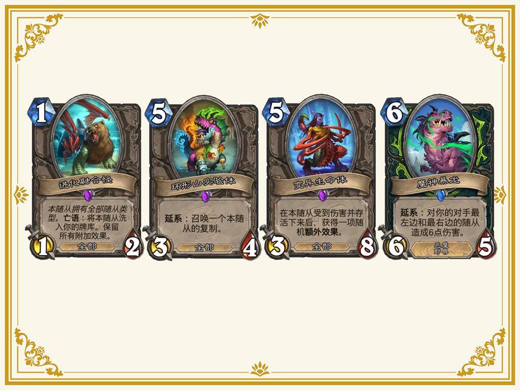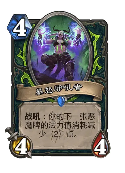 作为一张前期弥补费用曲线且能延时提供站场的过渡牌十分好用,且其另一个aoe的抉择效果也能够增强面对快攻的抗性、控场时同时a掉己方的残血精魂商贩或清理1费看客为场面腾格子、甚至可以处理DK的血虫。推荐满编。