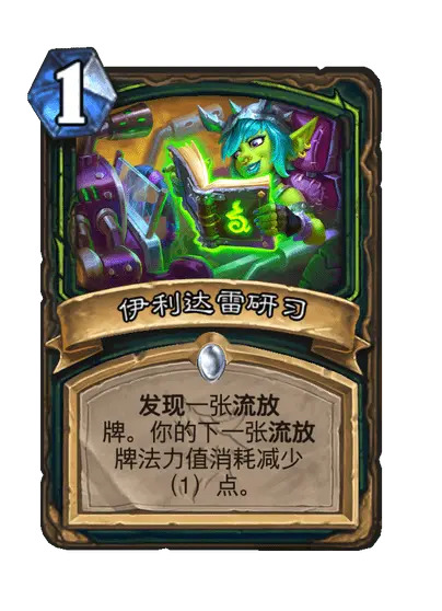研习若起手保留,推荐的打出时机为2-3费,多用于寻找过牌,如:火色魔印奔行者、幽灵视觉、飞翼滑翔;若需要寻找解场法术则更推荐4费打出,以当回合能够打出流放的工坊事故和盛宴之角。