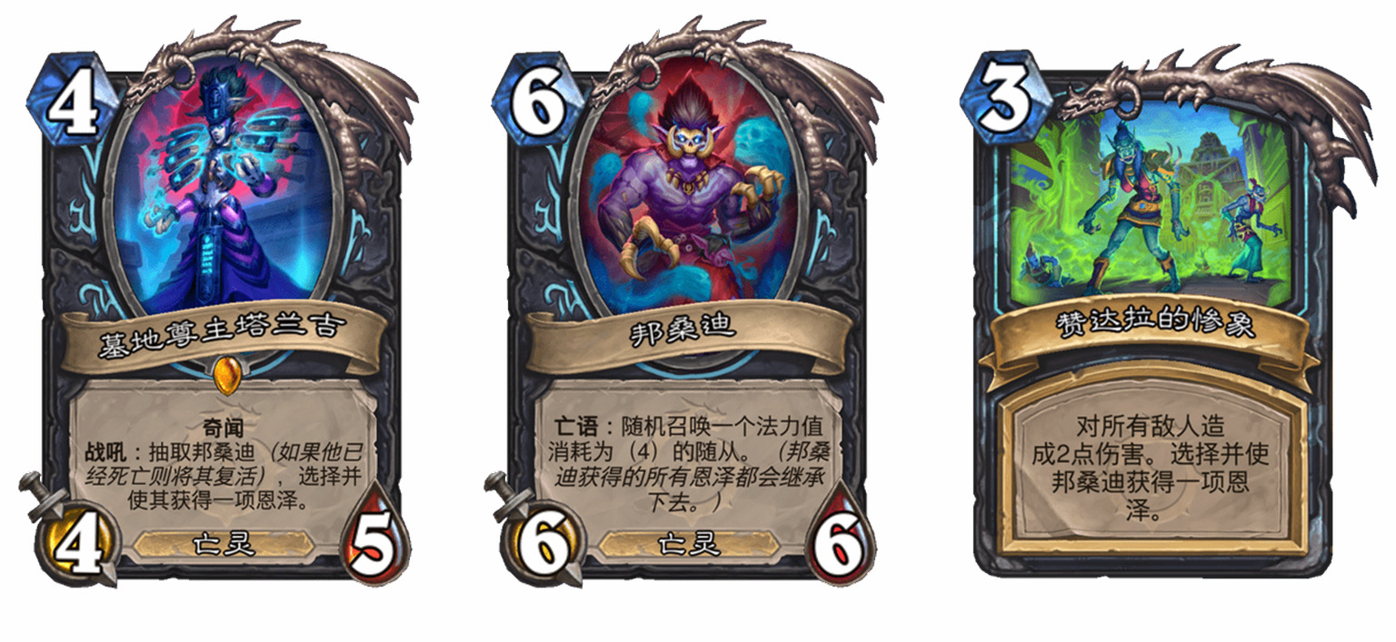 塔兰吉这次之所以成了死骑牌,是因为在这条时间线里瘟疫肆虐了巨魔的家乡赞达拉,导致塔兰吉被复活成了死骑。她和洛阿神灵中掌管死亡的邦桑迪的关系也随之变得有点倒反天罡,她仍效忠于邦桑迪,但也有了更大的操纵死亡的力量。