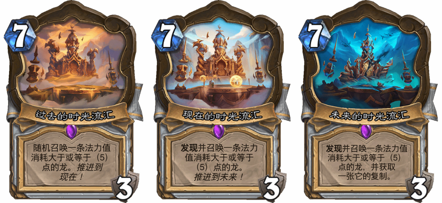 时光流汇在过去还不为人知,所以随机;现在不再神秘,所以改为发现;未来遭到了永恒龙军团的攻击,所以“永恒”获取一张复制。