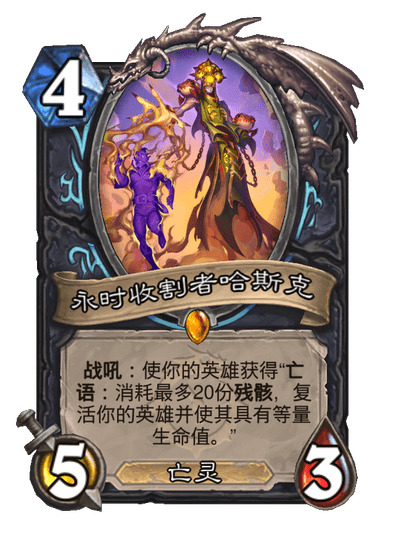 永时收割者哈斯克式的“英雄亡语”是Leo一直以来想做的设计,在奥特兰克英雄牌时提过,在传奇音乐节橙法时提过……这次终于如愿了。