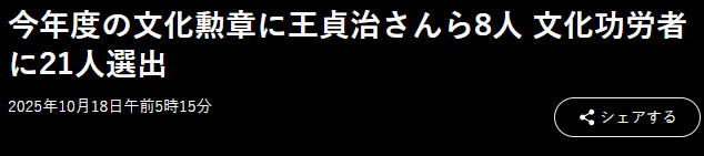 是日本政府官方举行的,评定在日本的学术、艺术等文化界,做出解除贡献以及社会影响力的人士,历年评选中首次声优获奖本届是首次突破。