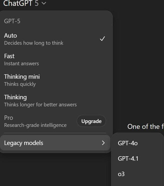 目前,OpenAI 的 GPT-5 系列已推出了多个模型。默认版本为 GPT-5 Auto,该模式可在标准模型与推理模型之间自动切换。推理模型能够进行更长时间的“思考”,从而生成更高质量的回答;而 GPT-5-instant 则基于非推理模型,响应速度更快。