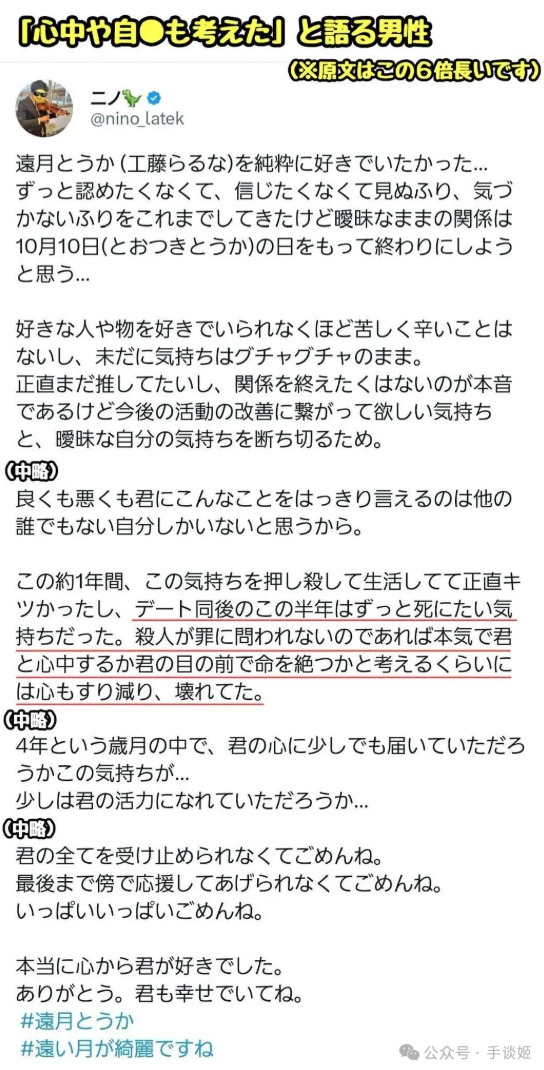 即使如此崩溃,在长文最后,这位粉丝仍然无法立刻讨厌上她,并且认为自己无法给她幸福——因为能够守护她的笑容的、配得上她的,是由她选择的那个他。