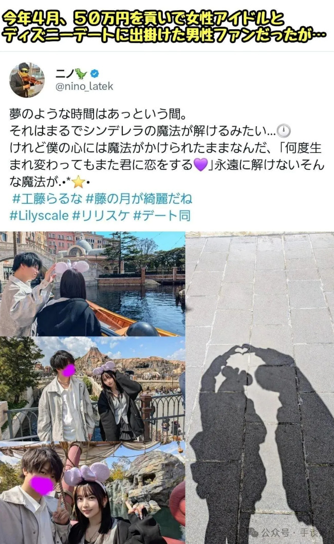 最近,日本一位偶像的粉丝终于得到了可以和心爱偶像一起去迪士尼游玩的机会——这建立在他砸了百万日元的基础之上。