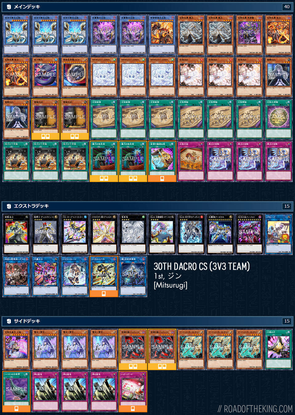 副卡组的「巳剑之皇子 小碓」,额外卡组的「光龙王@火灵天星」和「美丽的磁律机坏」是用来对抗月光卡组的妙妙工具。