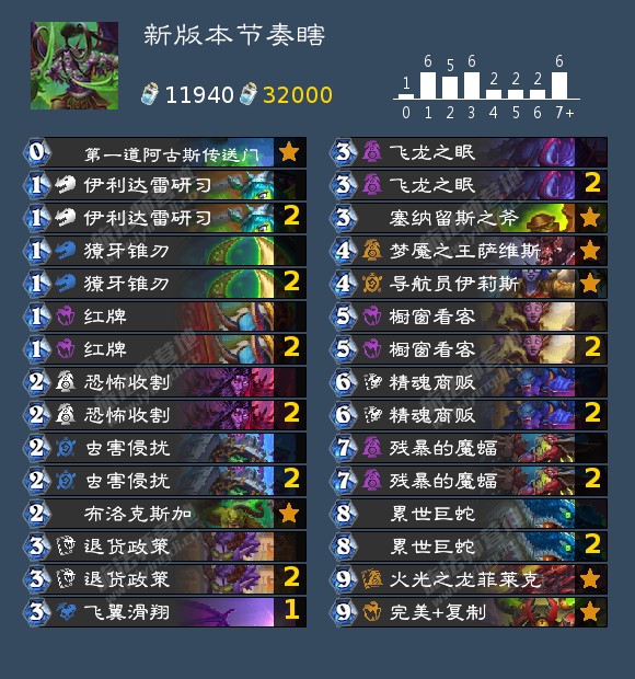 奇闻带来了0费卡位,巨蛇提供了8费卡位,这套卡组在新版本的构筑更加成熟,兼具娱乐性和强度,不过还是相当吃牌序和手气的卡组,估计仍是T2梯队。