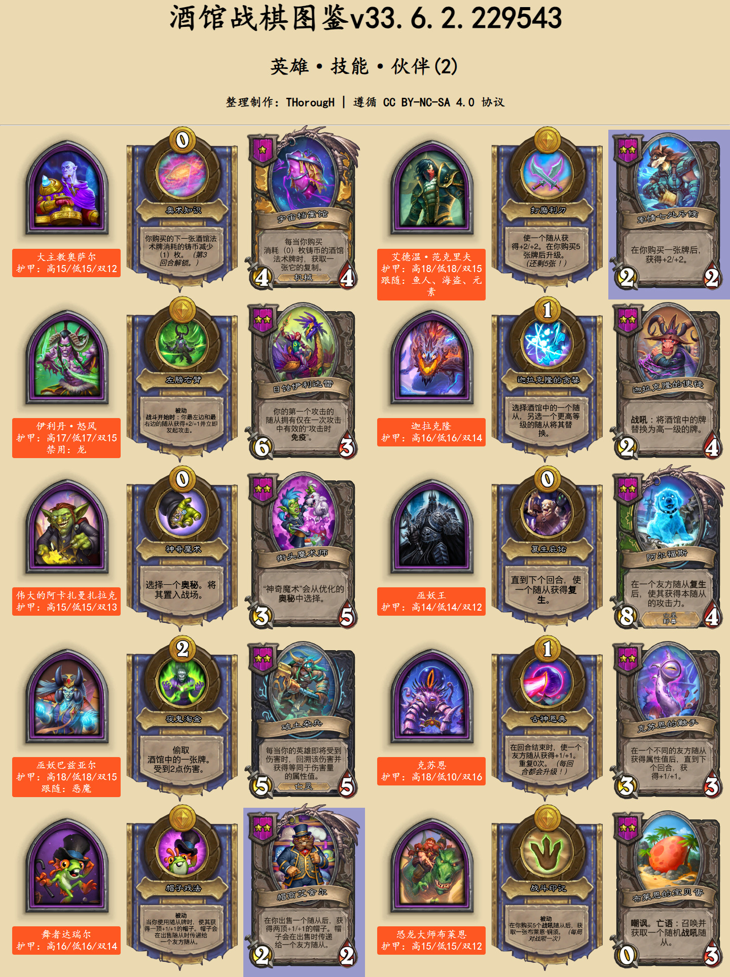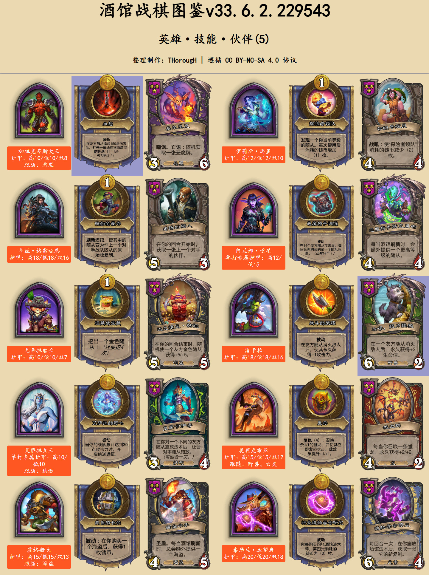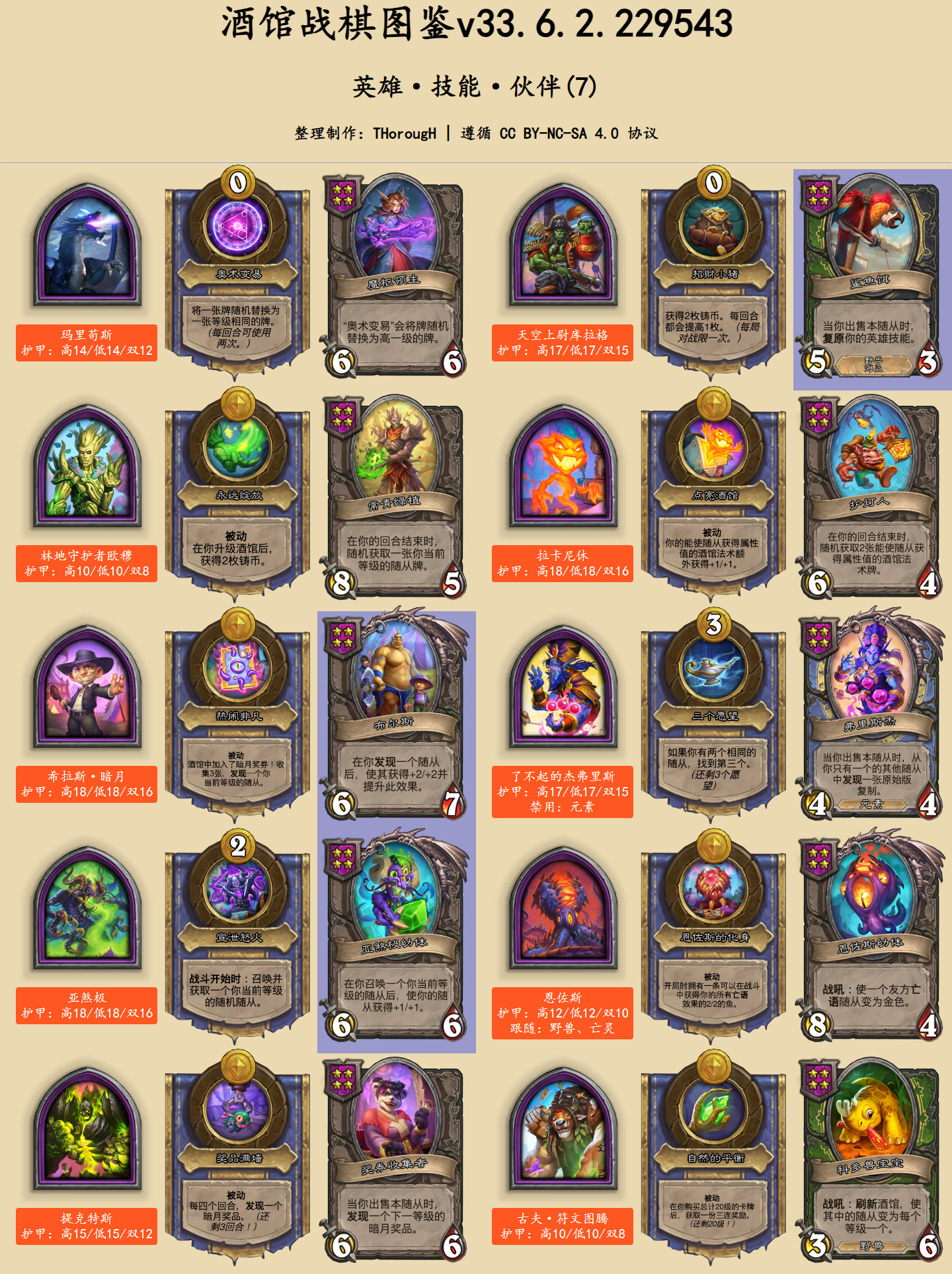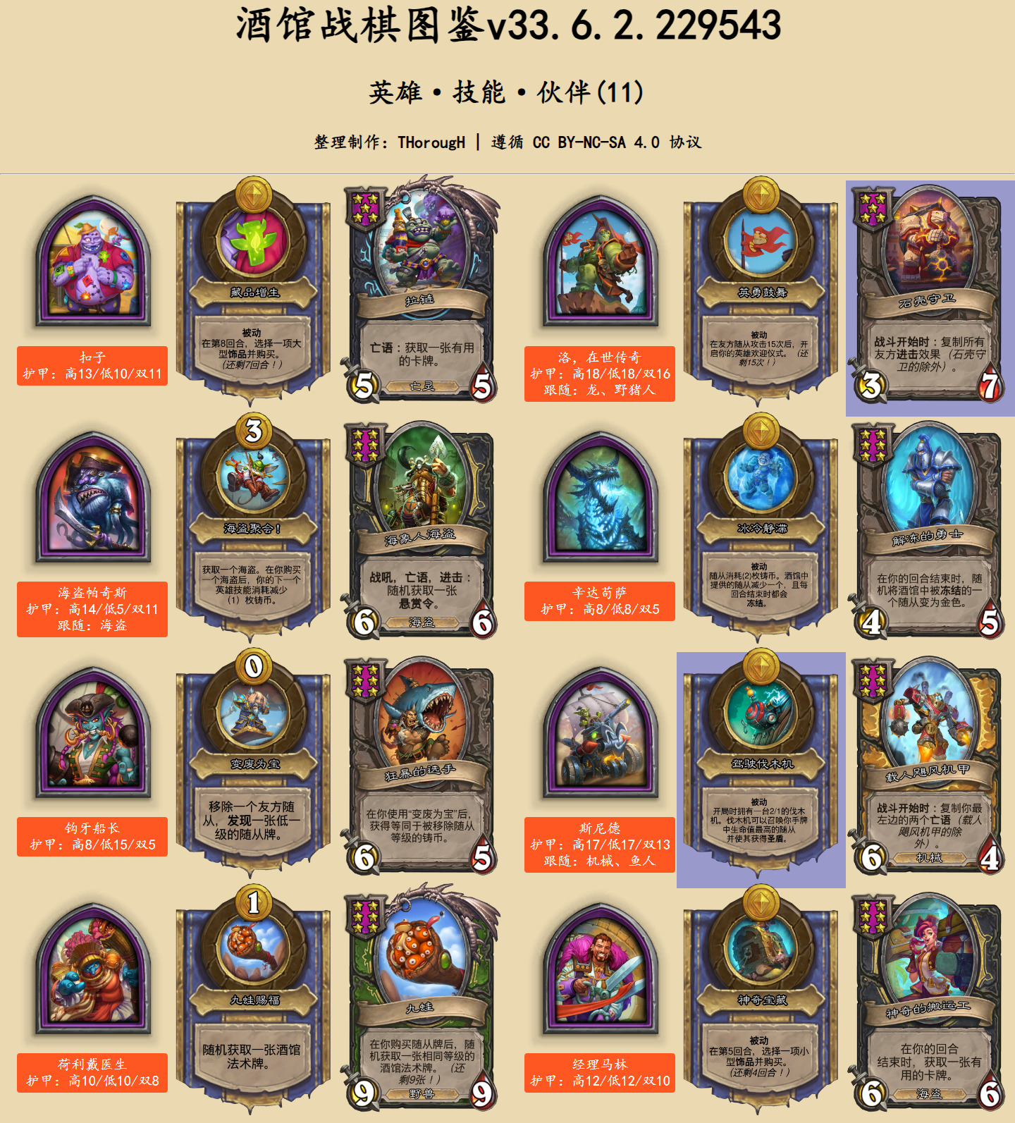 在英雄图鉴中,此次发生文本改动的卡牌用蓝色底色标出。