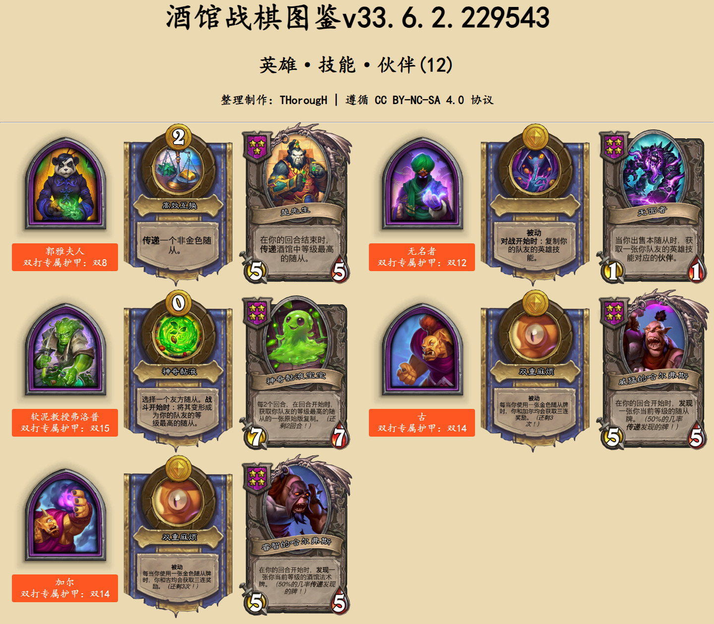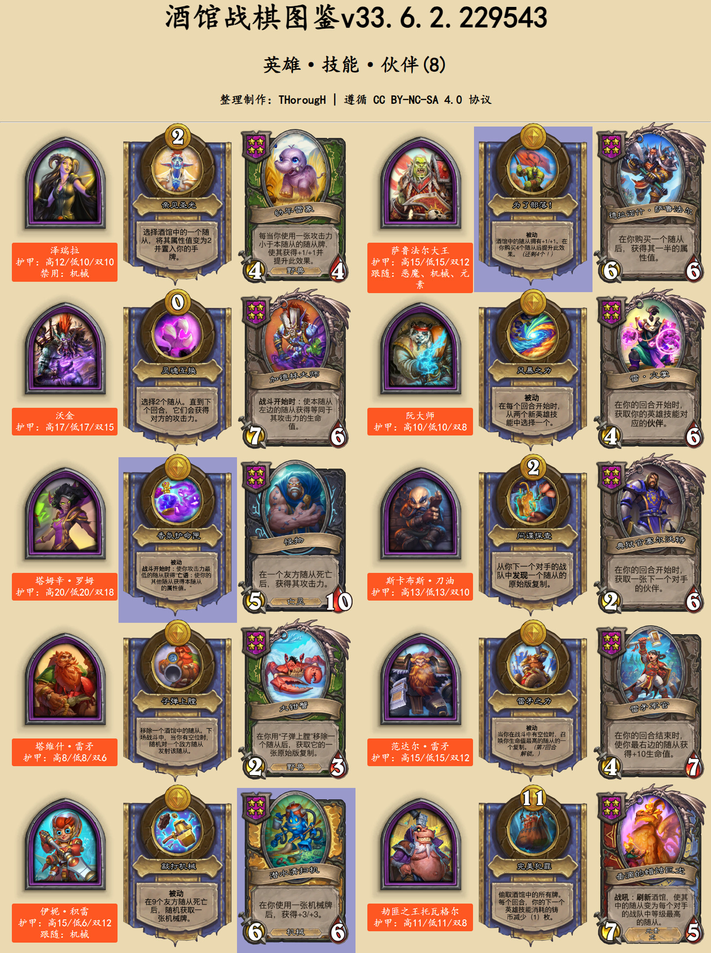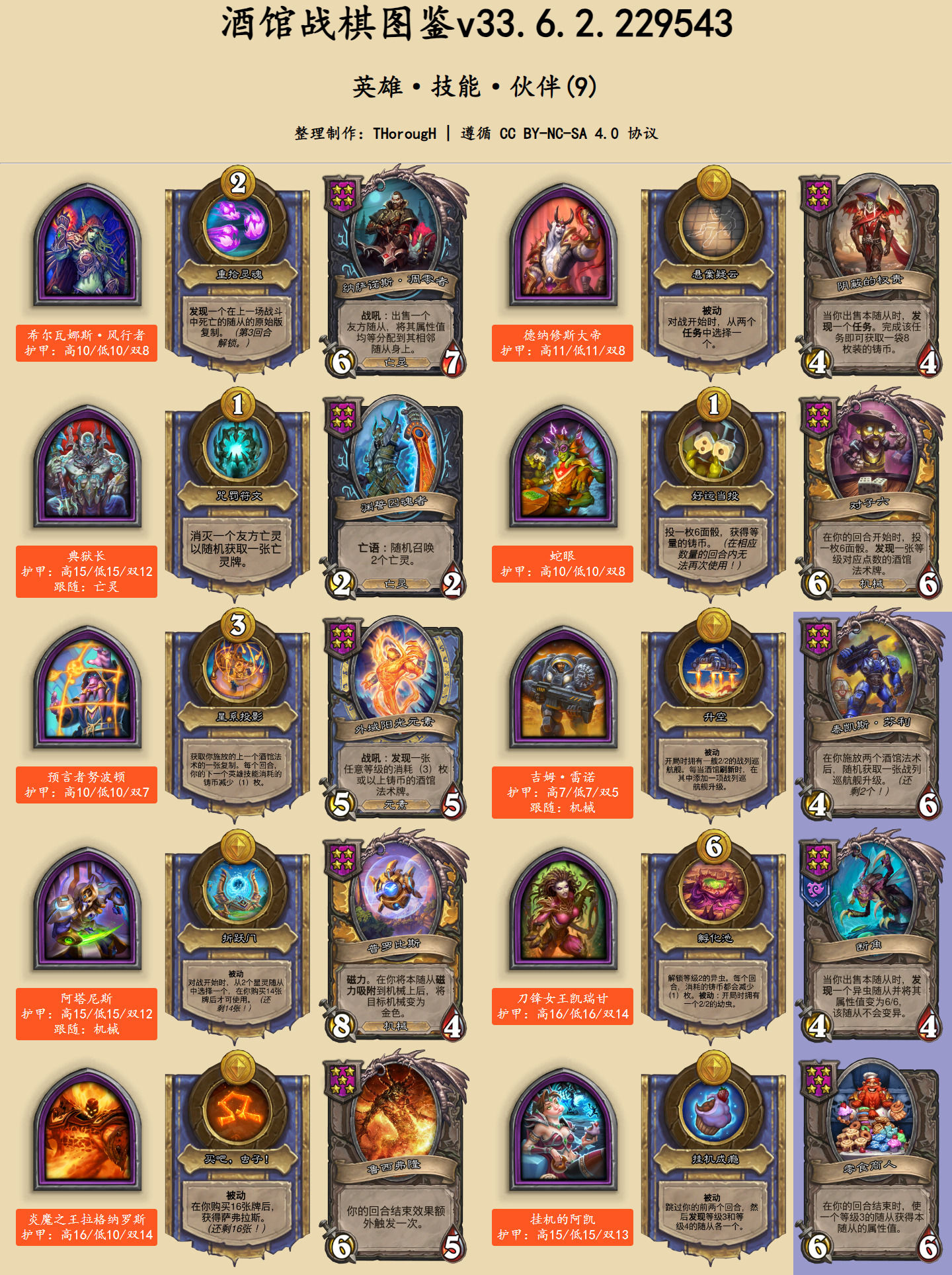 在英雄图鉴中,此次发生文本改动的卡牌用蓝色底色标出。