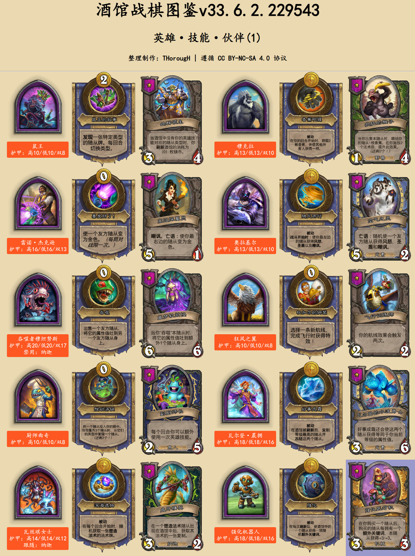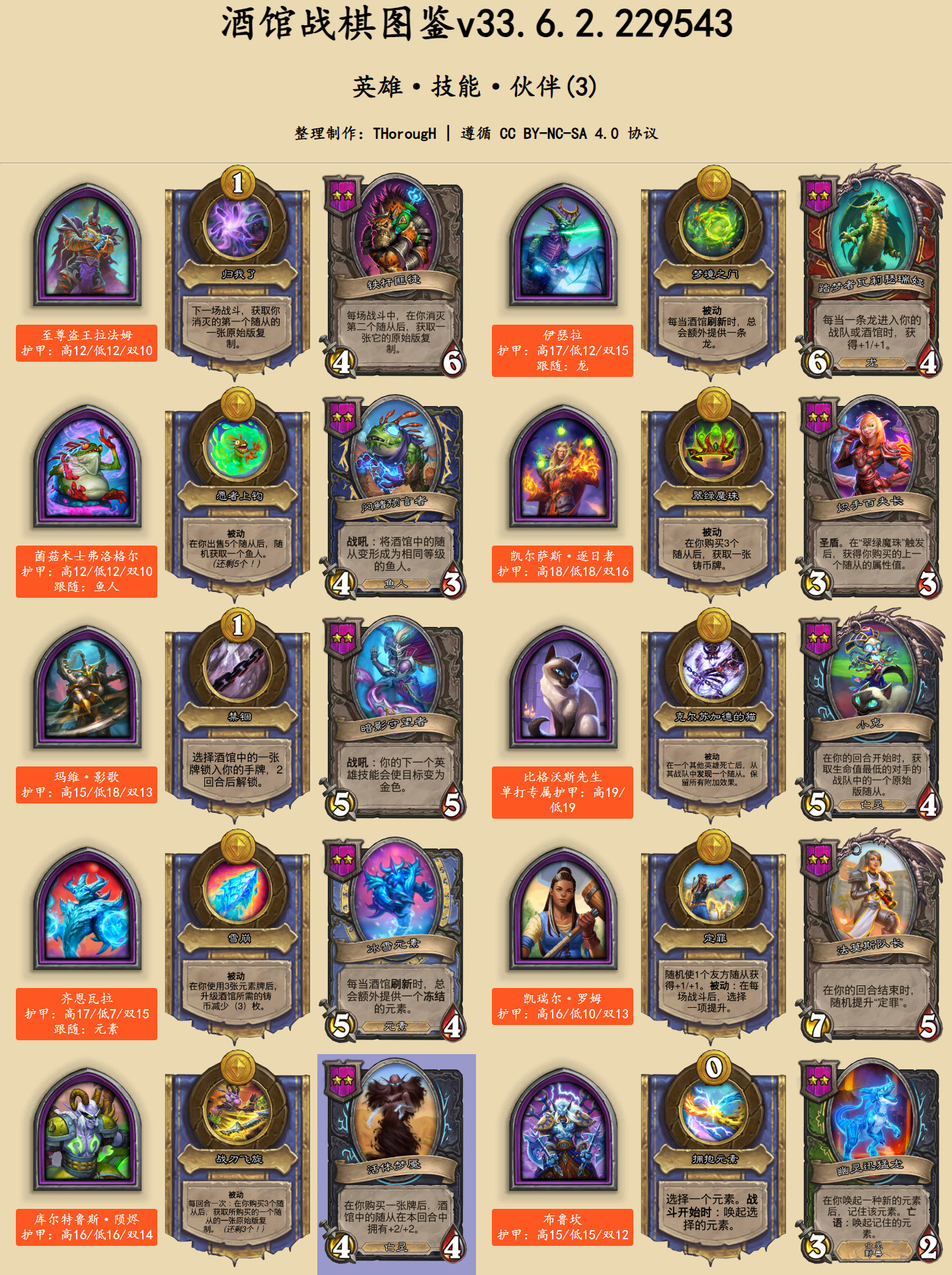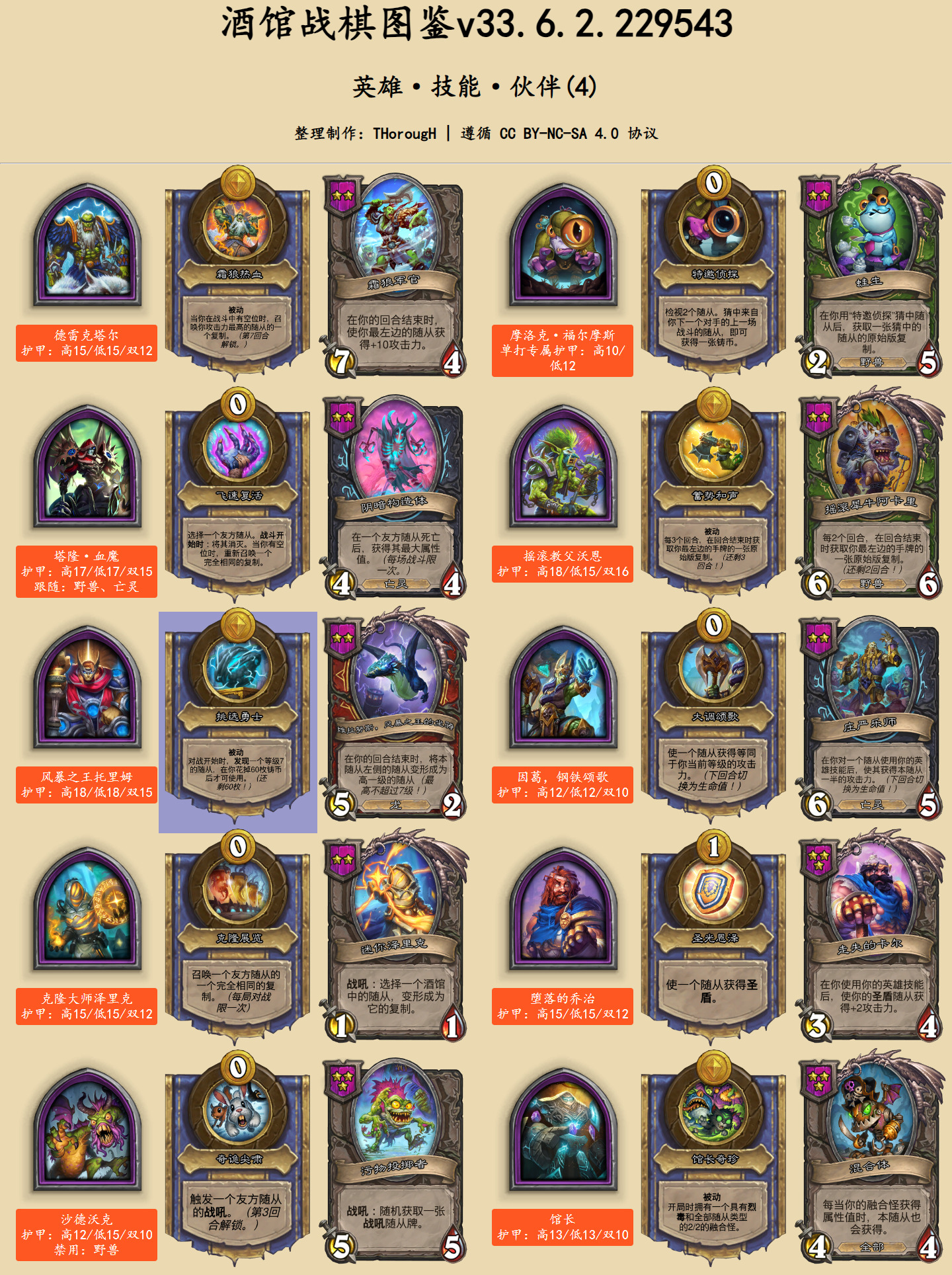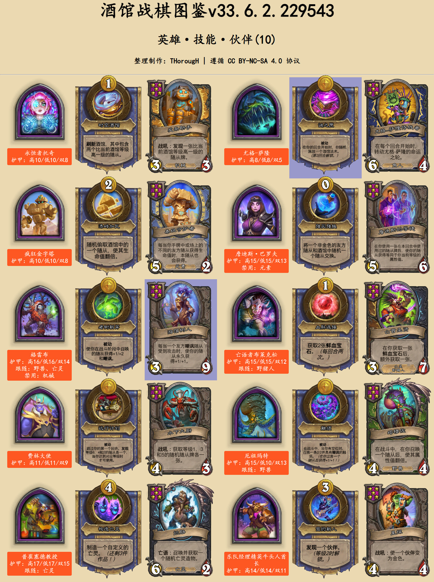在英雄图鉴中,此次发生文本改动的卡牌用蓝色底色标出。