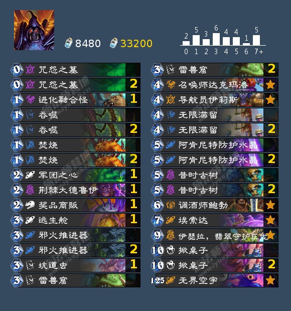 如果卡组有乐队经理精英牛头人酋长 或 奇利亚斯豪华版3000型 ,则详细卡图底下会显示相应的卡。