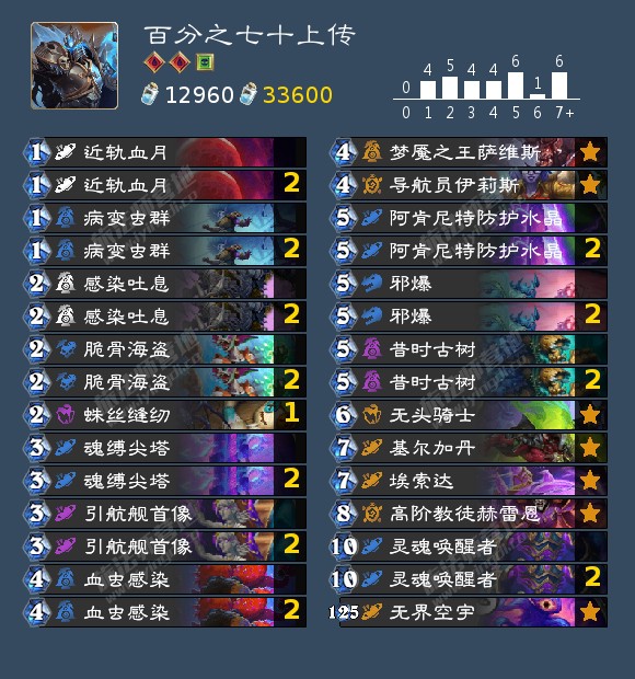 记住星舰释放时机要选对,不要养的很大才放,因为这套牌加了灵魂唤醒者就会有很多波星舰,其次最好有近轨血月再释放,而且要想好打什么牌才能触发血月的复生效果。