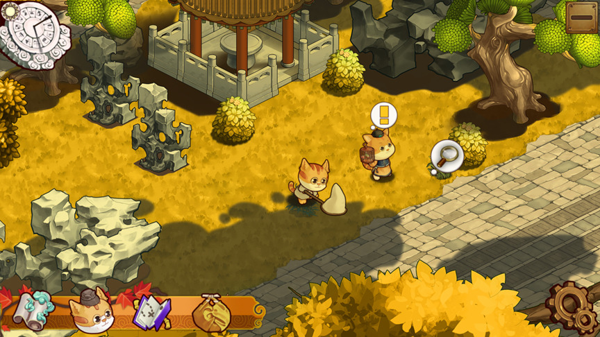 游戏融合轻松挂机与深度文化探索。放置挂机即可持续获得资源与收藏品,并跟随小猫的探索逐步揭开故宫鲜为人知的历史轶事。游戏中还融入诸多巧思:以传统仪器日晷显示时间变化。