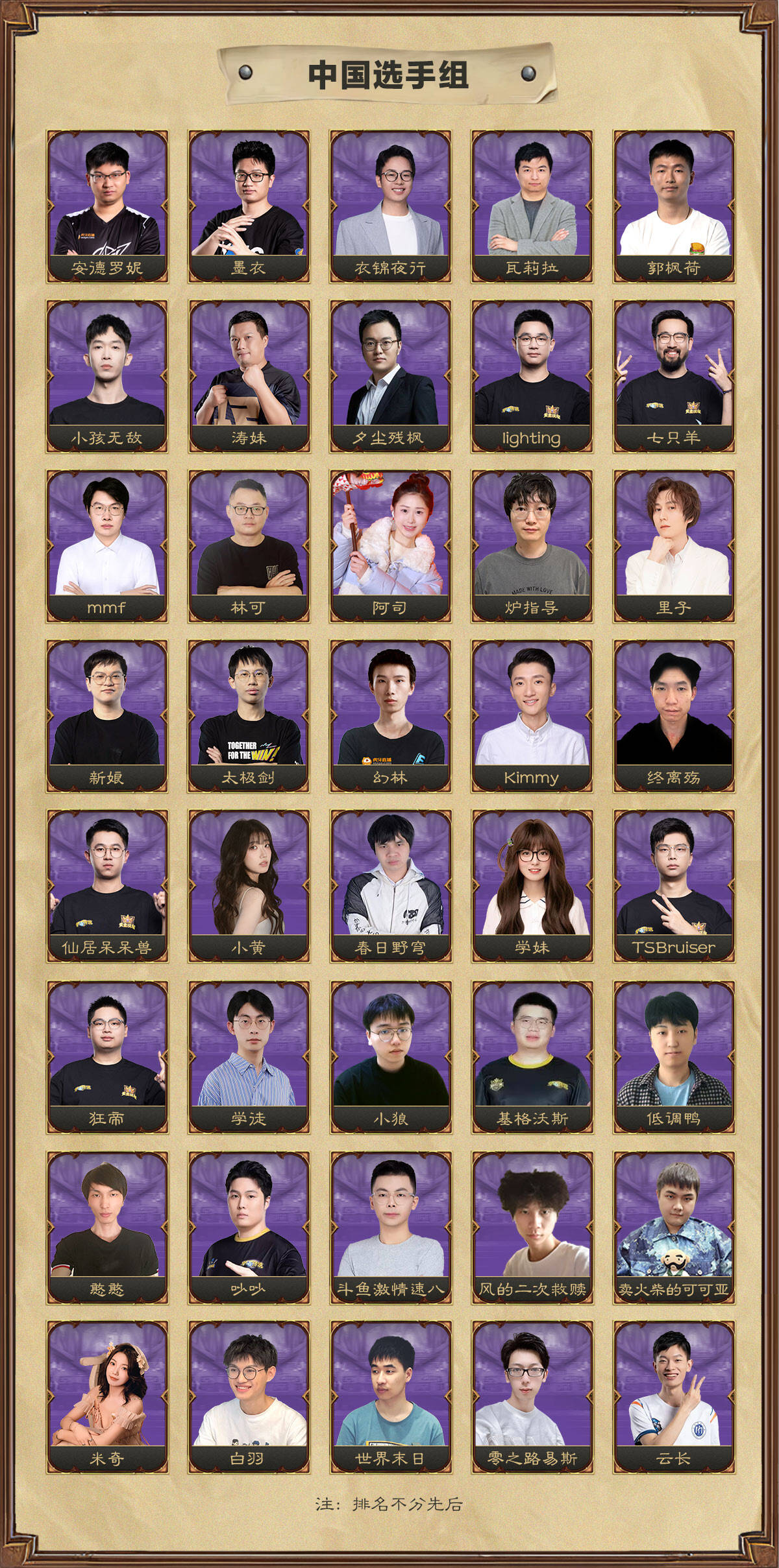 本次赛事由安德罗妮领衔,汇聚衣锦夜行、瓦莉拉、郭枫荷、墨衣、小孩无敌、涛妹等多位知名主播与选手,同时还有新人强劲选手世界末日前来挑战,共同角逐最终的8个晋级名额,赢取通往中美战棋邀请赛的入场券!