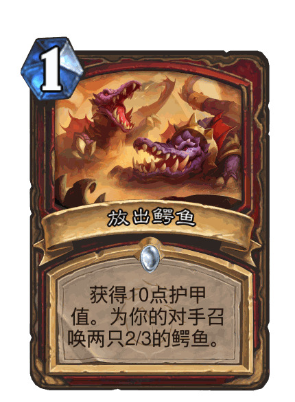 获得10点护甲值。为你的对手召唤两只2/3的鳄鱼。