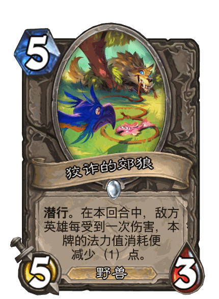 超光子弹幕,合理怀疑是在影射现在在狂野抽人的灵魂弹幕。这张卡带是大概率会直接带满的,但我这里要单独提一嘴,因为下个版本还有一张卡能与之配合,也就是狡诈的郊狼。虽然2费超光子弹幕接压狡诈的郊狼的上限确实很美好,但是我之后给出的预构筑中仍然不会携带后者。一方面郊狼的减费是次数制无论如何还是太苛刻了,全卡组甚至全术士卡池几乎只有超光子弹幕一张牌能有足够的减费效率,在站在场之后踢脸下的话本质是纯顺风卡,何况超光子弹幕还会受场面影响,举个例子对面下个疯狂生物,你的郊狼就减不到0费一起下了,虽然1费也可以但是这种对特定单卡绑死的配合我还是不太愿意在一套快攻卡组里携带。