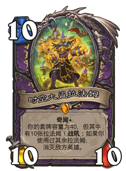 噱头很足,效果也确实惊艳的拉法姆,但是仔细分析一下就知道强度方面其实要打个问号。由于大伙大概率不记名字,因此接下来不同的拉法姆我将使用数字进行指代,例如鱼人拉法姆我将直接称作“3”或者“3拉法姆”。毫无疑问,里面最卡手的是10拉法姆,也就是时空大盗拉法姆本体,纯白板来的。其次则是5,单纯的叠甲只在部分情况下有奇效,多数时候是比较亏的。剩下的拉法姆里面,无论什么时候都厉害的是6拉法姆,666扫6尽显模型强度;其次是前期能来的3拉法姆,后续接6789随便哪一个都极其恐怖,条件概率来说有3的情况下找6789任意一个难度并不大,不过中期上手会略有一点尴尬。2则是目标能buff到一个就差不多,buff到34的话可以顺拍比较合适,buff到7的话则是能吃到复制的收益。理论上限当然是237连拍,标准看见4费两个99墙不头晕的卡组寥寥无几,但是几乎打不出来。除此之外,13是亡语,3是鱼人,6是恶魔,以上!