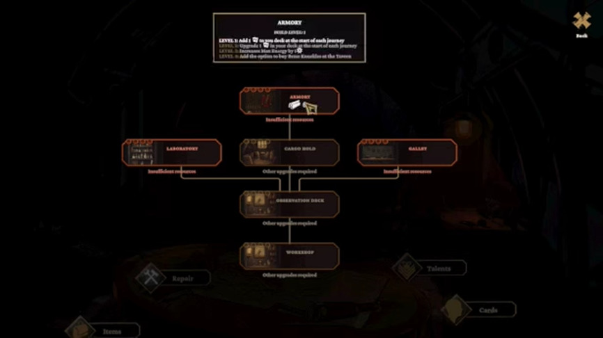 Roguelite成长进程:不论是完成任务或失败撤退,你都能搜集到钱财、卡牌、道具、古物和回收材料。利用这些资源升级你的角色与飞船,在下一轮游戏斩获更好的结果。