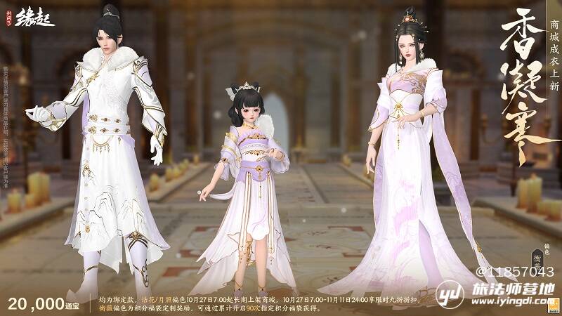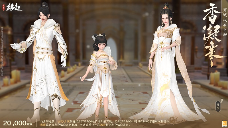 寒香凝露透清光,琼楼玉宇,素影摇霜,裁得冰绡作衣装。商城成衣「香凝寒」翩然而至。外装共有诘花、月照、衡薇三种偏色,衣间纹路细腻,尽显清绝之姿。
