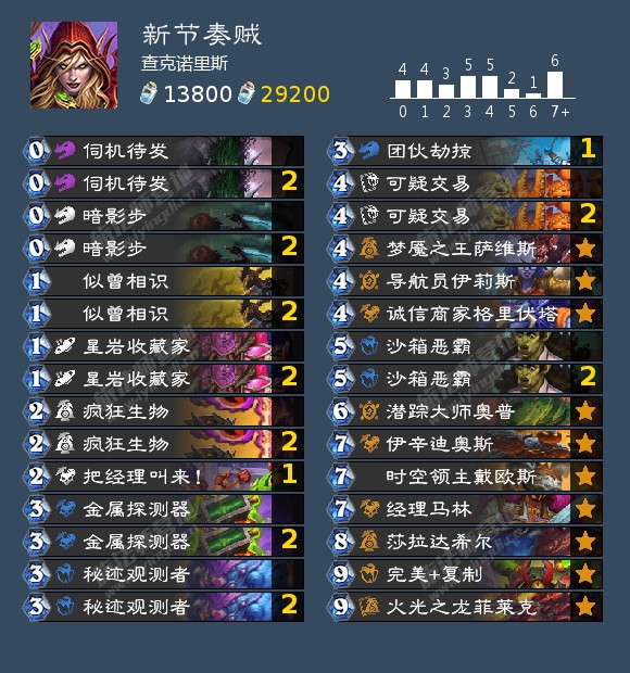 笔者估计,只要节奏贼的几张关键卡没有突然吃到削弱,这套牌将是新版本潜行者的强度扛把子。