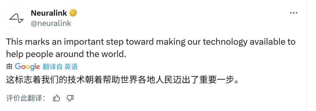 公司表示,这一突破“标志着让Neuralink技术惠及全球患者的重要一步”。