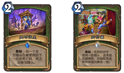 34.0版本竞技场卡池里只有这两个奥秘,可以反映很多细节:①无需防法师奥秘了;②面对猎人挂奥秘基本就只需要注意一下对手上回合使用的随从即可,折价篓可以忽视;③秘迹观测者、新卡神秘无面者只会施放这两个奥秘,彻底失去了博弈能力,前者基本等同于322抽1,后者只需要看一下自己脑门顶上的奥秘就能猜出另一个;④寻物解谜找不到法师奥秘,按理说应该从这两个发现但实际上就是空放,目前该卡已禁选。