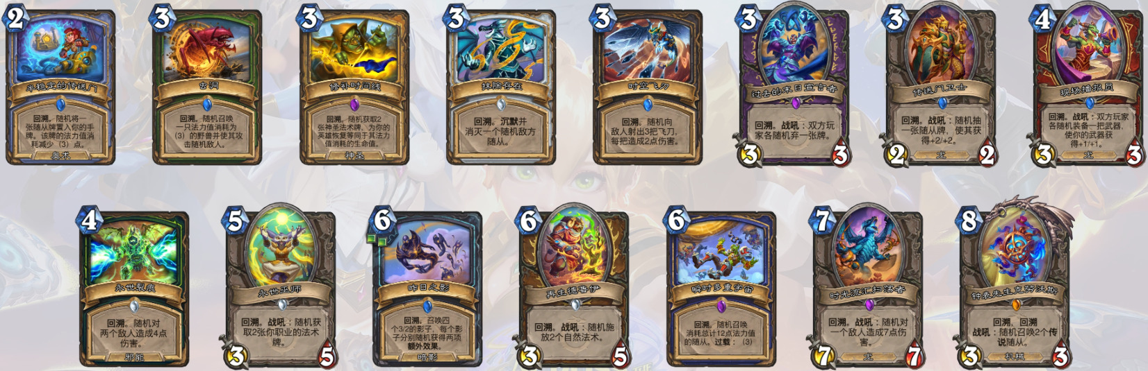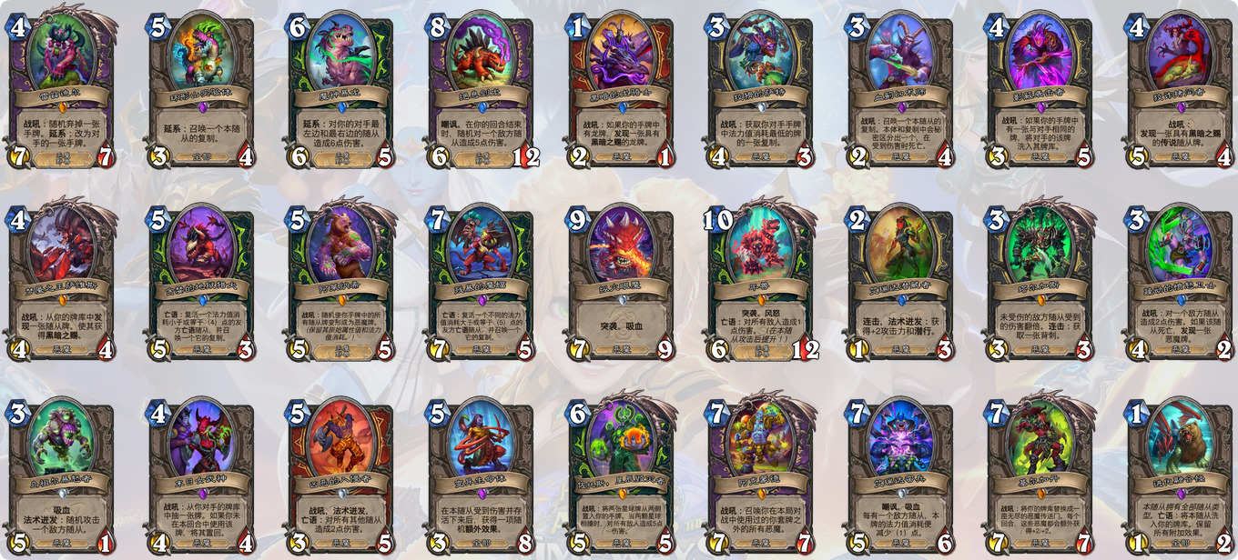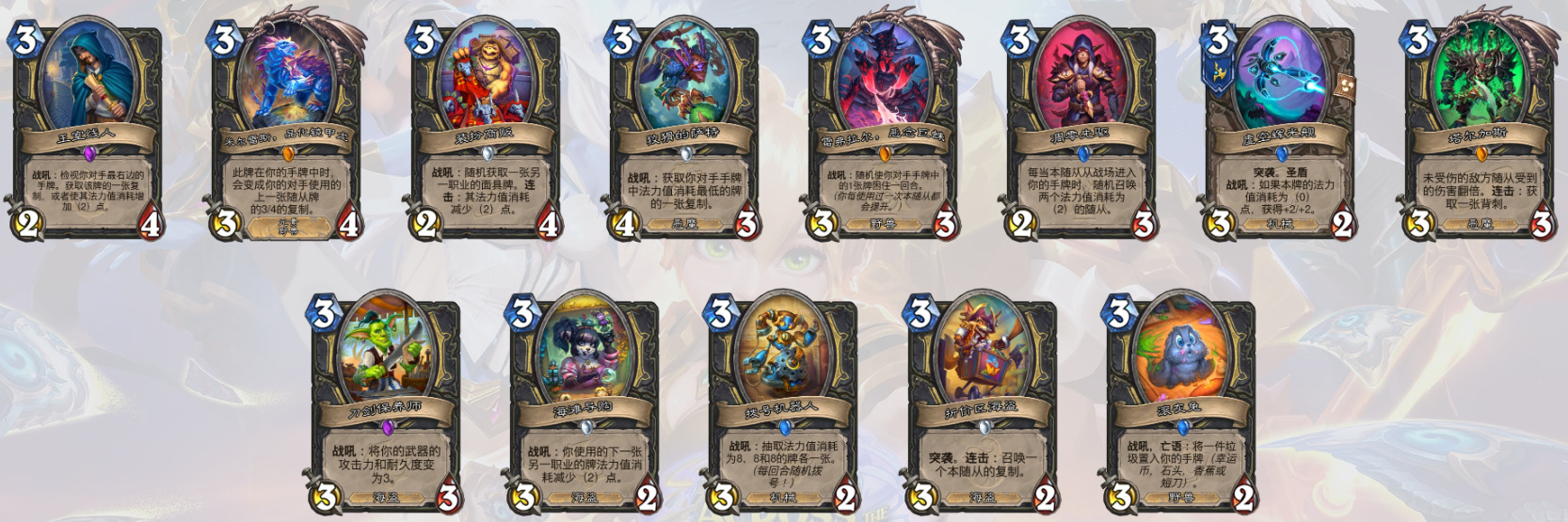中立(仅列出出现率较高的)——梦想策划师杰弗里斯、混调师、打盹的动物管理员、发条演奏家