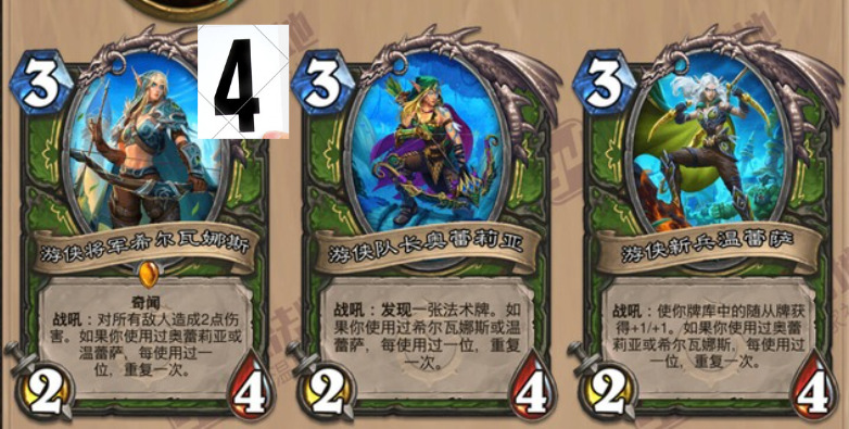 带奇闻的发现猎:游侠将军希尔瓦娜斯给猎人补充了一张珍贵的AOE牌,加上混调师的AOE,猎人版的传播瘟疫—异星生物,我感觉这套快攻猎很难打带奇闻的发现猎,只能赌对面卡手找不到AOE和嘲讽。
