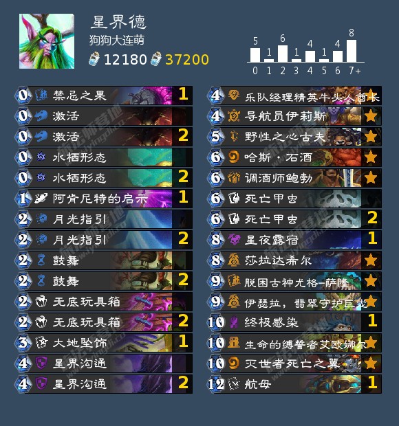 来自狗狗大联萌的星界德,他在比赛中使用这套卡组打进8强: