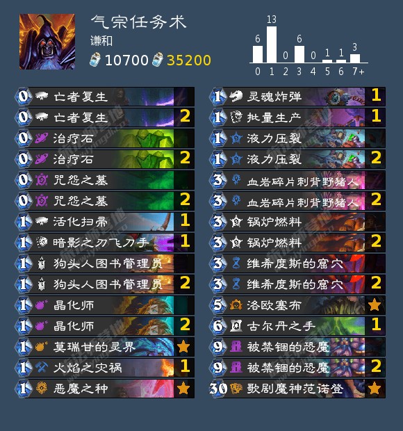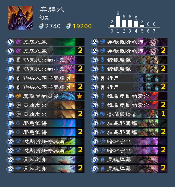 可以看到这套弃牌术的卡牌投入和过往构筑差距很大,这是一套偏快的构筑,我们可以近似理解为这套卡组是类似快攻暗牧的极限快攻思路,而非传统的节奏思路。