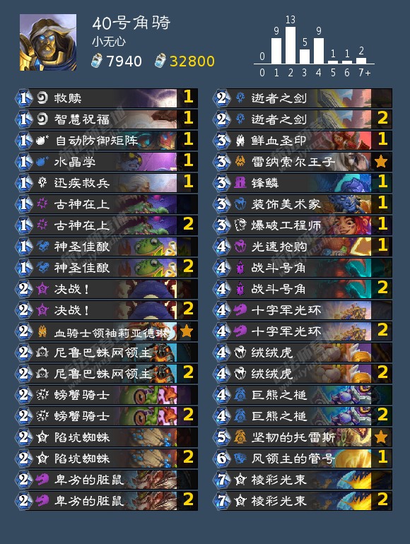 值得一提的是我这次的参赛经历,我使用的四套卡组分别是圣契骑,40钩牙贼,气宗任务术和任务瞎,贯彻思路四抓宇宙,结果好不容易抓到了,因为自己40钩牙贼熟练度不足,暗影步乱交,被双关并惨遭宇宙暗牧越狱,预选赛第一轮就3/2滚了(