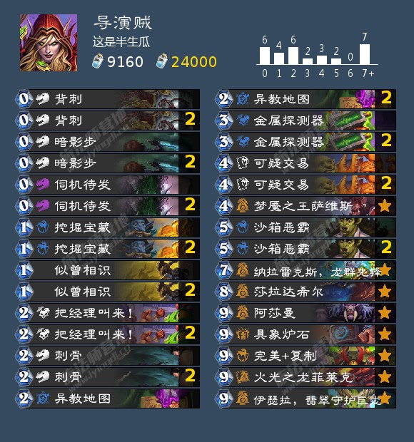 卡位还有很大的改动空间,我尝试过其他构筑,比如带钟表先生克劳沃斯 、团伙劫掠、刀扇、传送门卫士,修修改改还是这套最稳定,很大概率6费准时启动,大家可以根据自己的喜好和环境更换单卡。